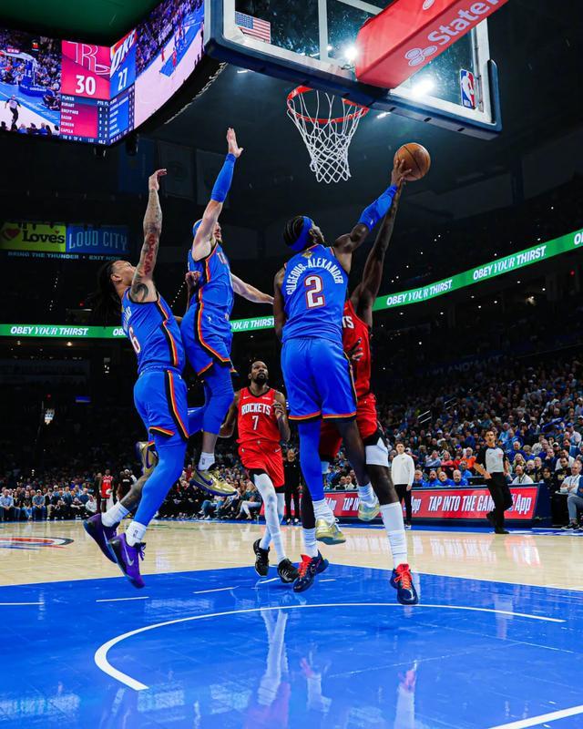 這賽季的雷霆,依然是全聯盟防守最好,也是最會包夾最能拼搶的球隊,他們的搶斷聯盟第一,利用失誤得分也是聯盟第一,同時他們的失誤只排在聯盟第29。一方面能瘋狂造成對手失誤,一方面自己失誤控制得很好,別讓他們抓到機會打反擊,跑起來就是一波流。